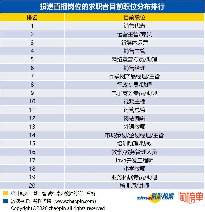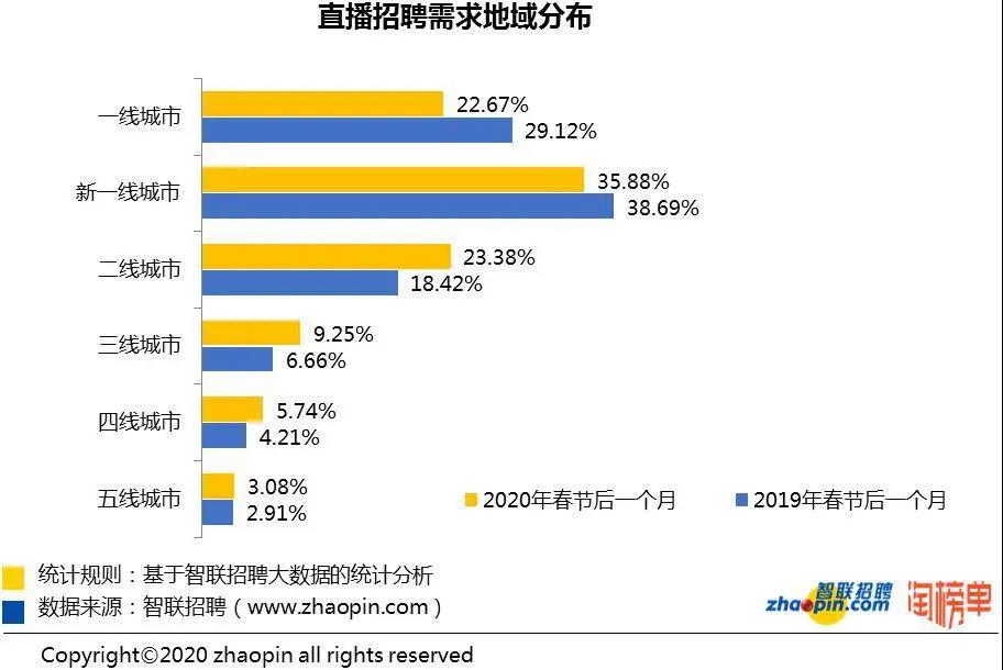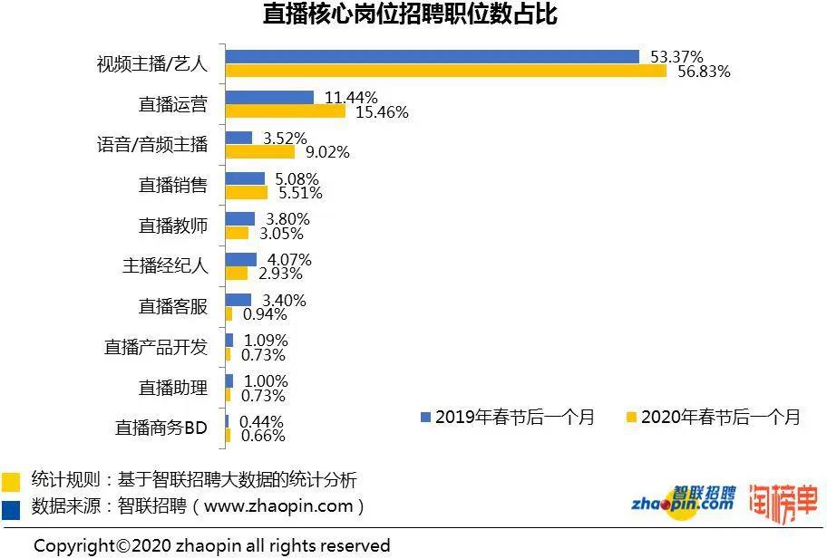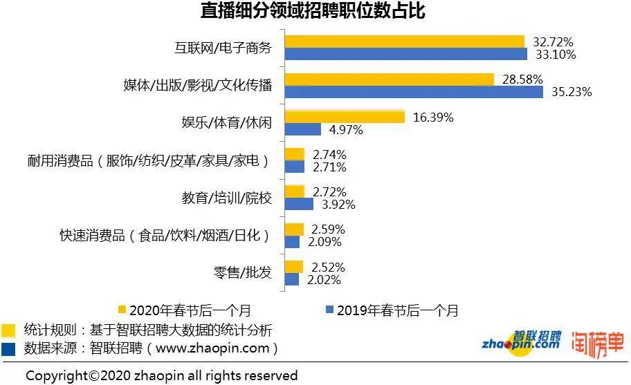 近日,智聯(lián)招聘攜手淘榜單共同發(fā)布的《2020 年春季直播產(chǎn)業(yè)人才報(bào)告》顯示,