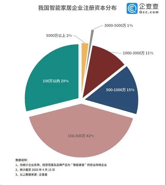 智能家居如此龐大的市場(chǎng)需求和商業(yè)布局,迄今為止整個(gè)市場(chǎng)還沒有一家能夠形成較大的規(guī)模。從注冊(cè)資本上看,涉足智能家居的企業(yè)大部分注冊(cè)資金在500萬以下,注冊(cè)資金在5000萬以上的企業(yè)僅為2%。