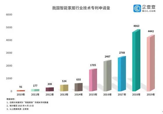 潛力巨大的“藍(lán)海”市場(chǎng)早已廠商云集,智能家居行業(yè)技術(shù)專利申請(qǐng)量迅速攀升。企查查數(shù)據(jù)顯示,我國智能家居相關(guān)專利申請(qǐng)總量早已破萬,2015年開始我國智能家居行業(yè)技術(shù)邁入快速發(fā)展期,2018年達(dá)到巔峰,數(shù)量達(dá)4863件,較2017年同比增長(zhǎng)了76%,2019年專利申請(qǐng)數(shù)稍減。由此可見,智能家居市場(chǎng)競(jìng)爭(zhēng)較為激烈,各路玩家步伐急促。
