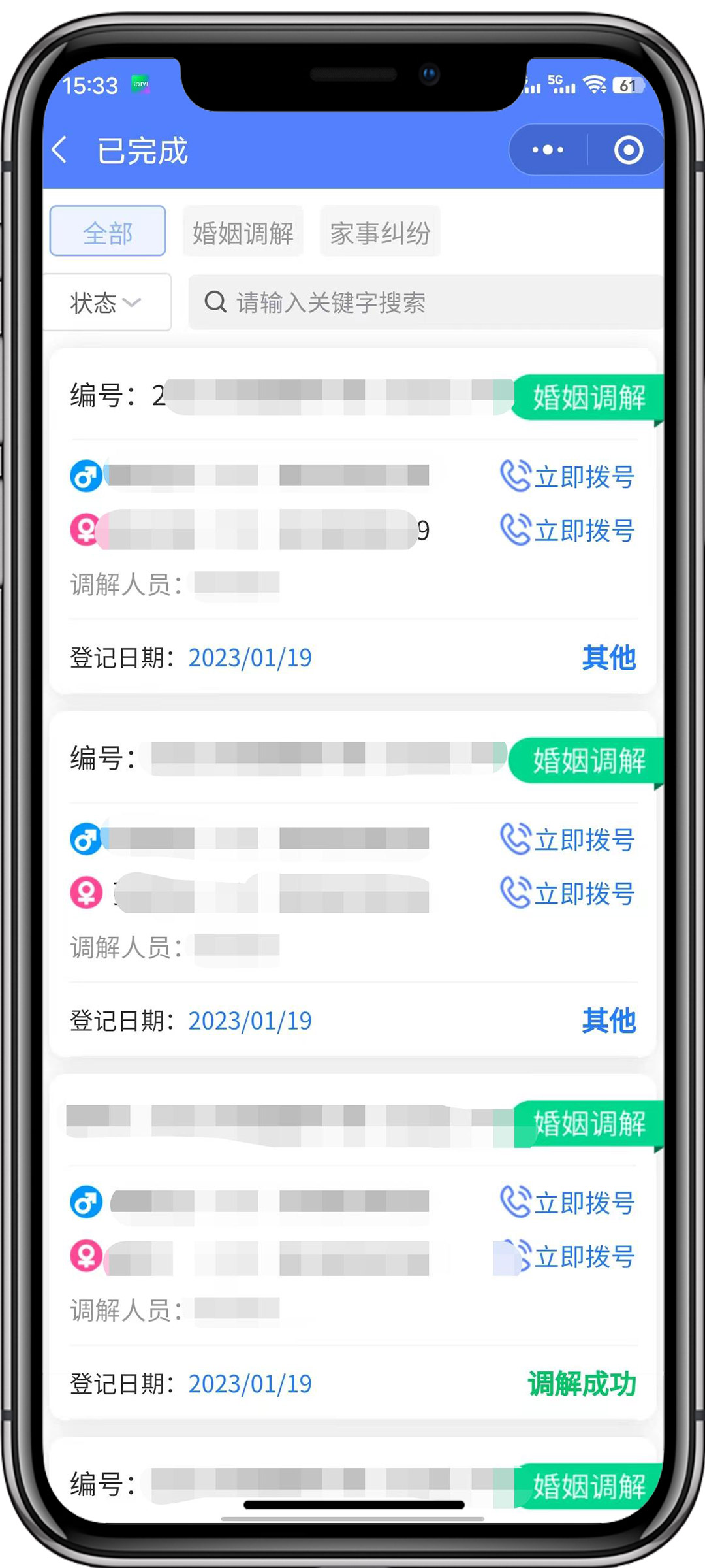 渦陽婚姻家事調(diào)解小程序二維碼?貫徹落實(shí)全國、省關(guān)于做好婚姻家庭糾紛預(yù)防化解工作意見文件精神的一項(xiàng)重要舉措。旨在以建立婚姻家庭糾紛調(diào)解中心為抓手,更好的開展婚姻家庭糾紛調(diào)解工作,達(dá)到預(yù)防化解婚姻家庭糾紛、促進(jìn)家庭和睦、維護(hù)社會和諧穩(wěn)定的目的。調(diào)解員線上接單調(diào)解婚姻家庭糾紛。
